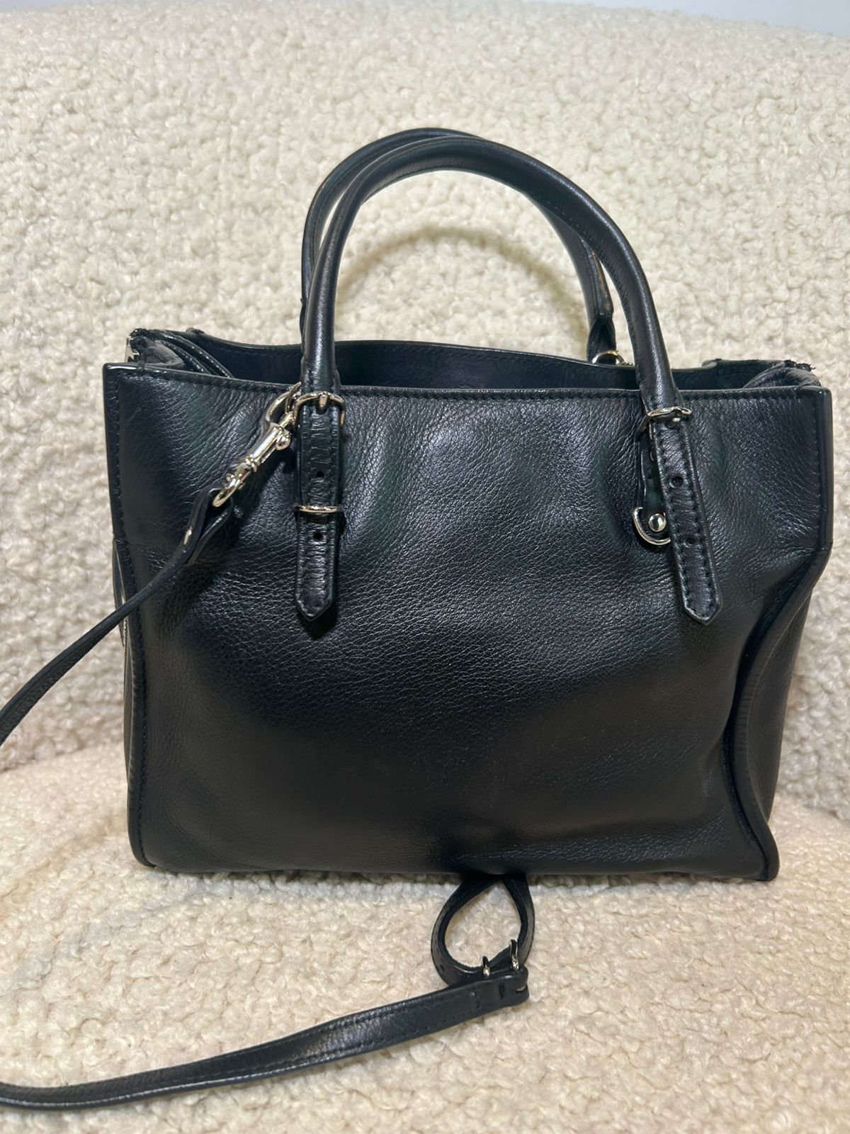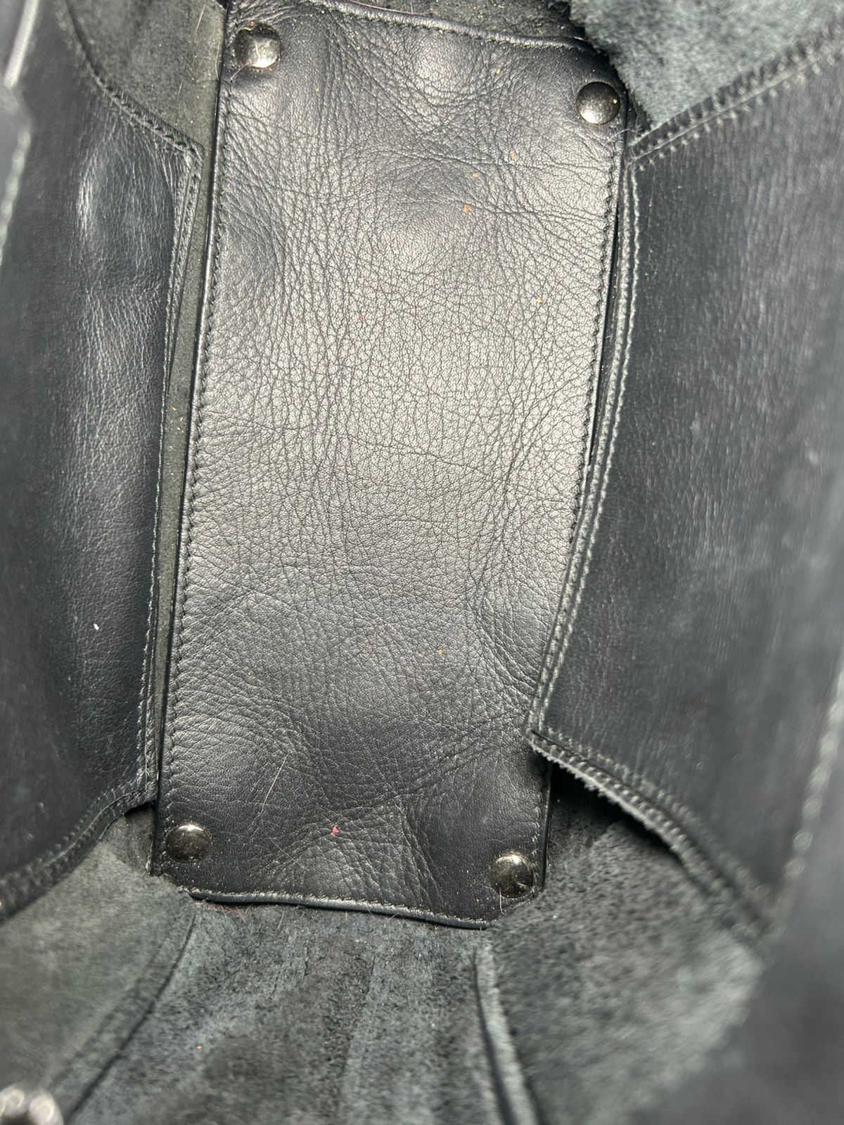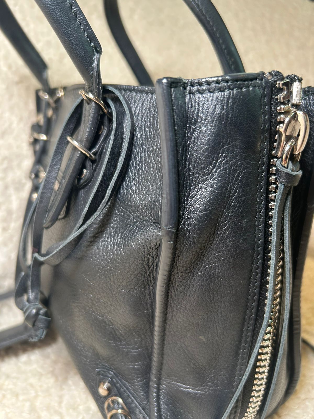 Even patina, visible watermarks, scuffing, and creasing on leather trim, minor scuffing on hardware.